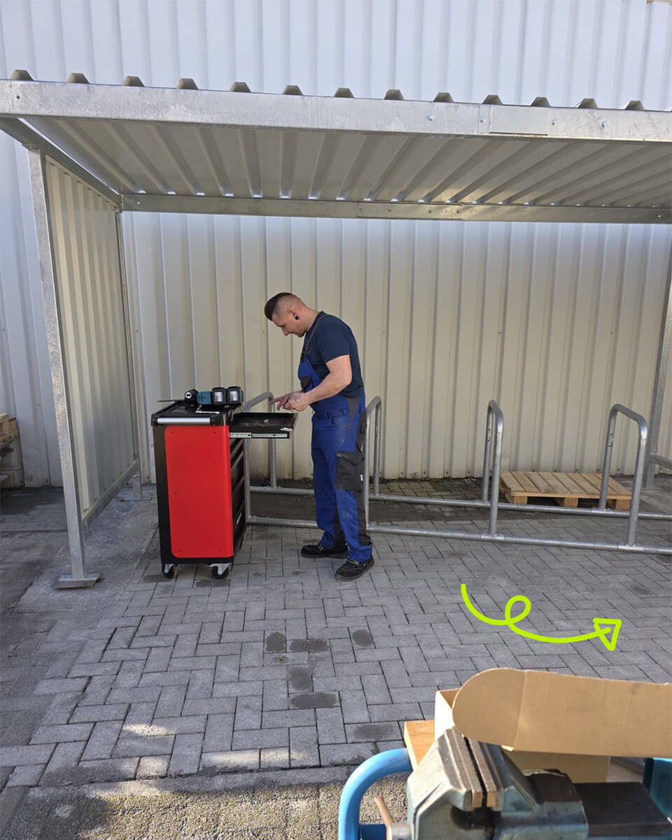Jetzt steht sie endlich: die wetterfeste Garage für unsere umweltfreundlichen Fortbewegungsmittel. ☀️