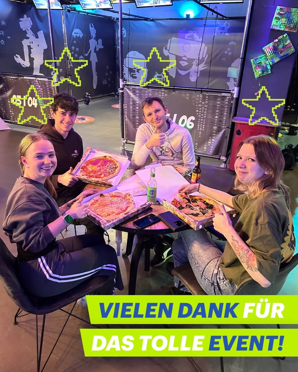 Zwischendurch gab es zur Stärkung leckere Pizza 🍕 – perfekte Energie für die nächste Runde.