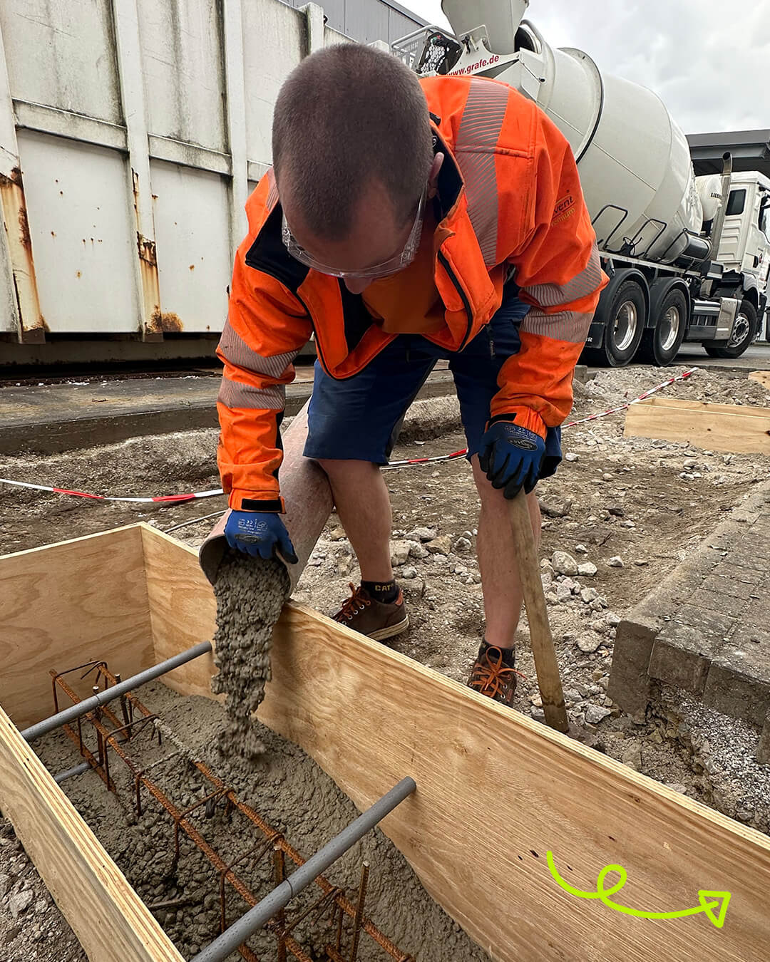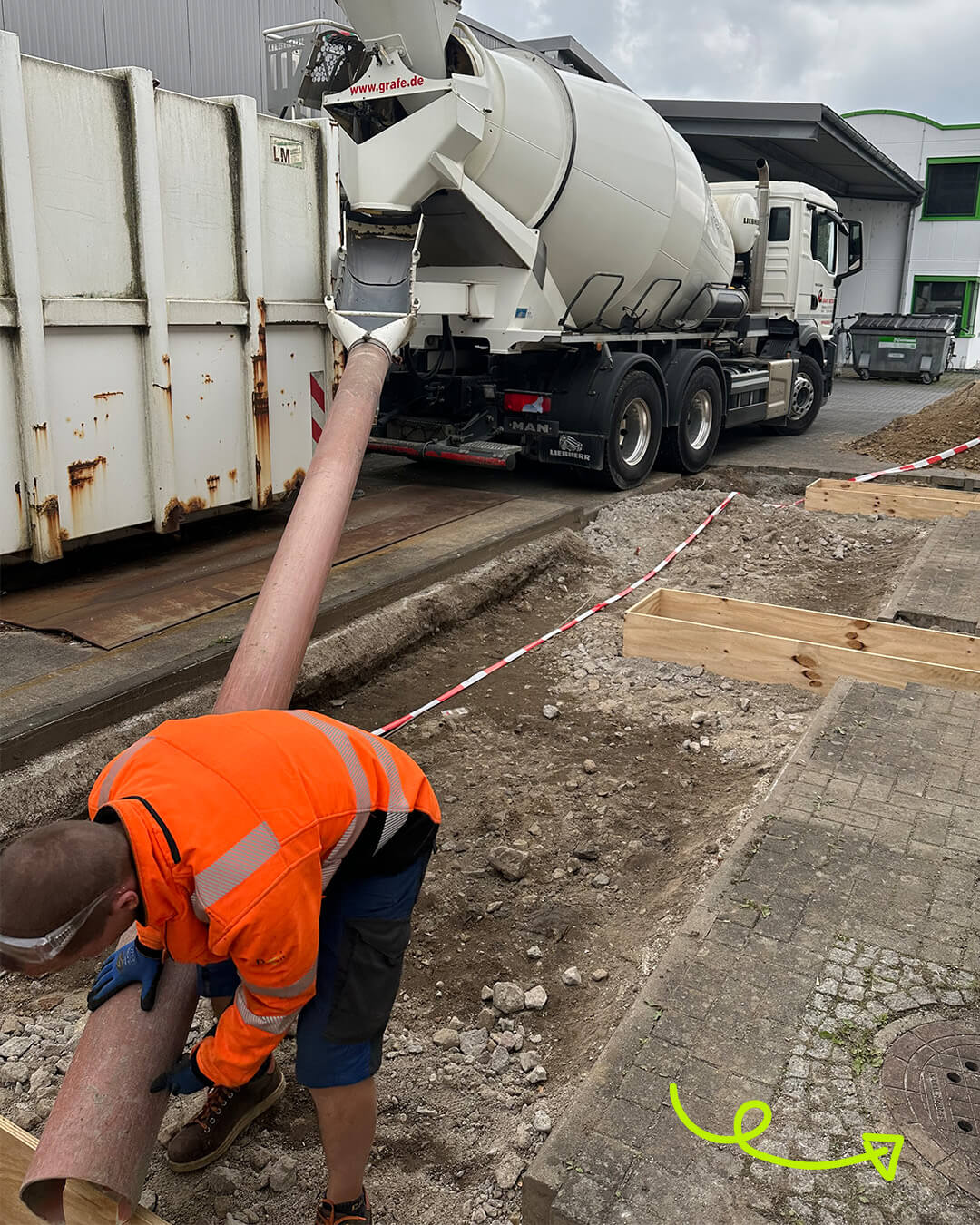 Vergangene Woche hieß es – Anlieferung von besonderer Ware. 🚛 Der Beton für die Fundamente kam an! 😃 Lagerist Oli startete mit der Wareneingangskontrolle, gab die Lieferung frei und schon ging es munter los. 🤝