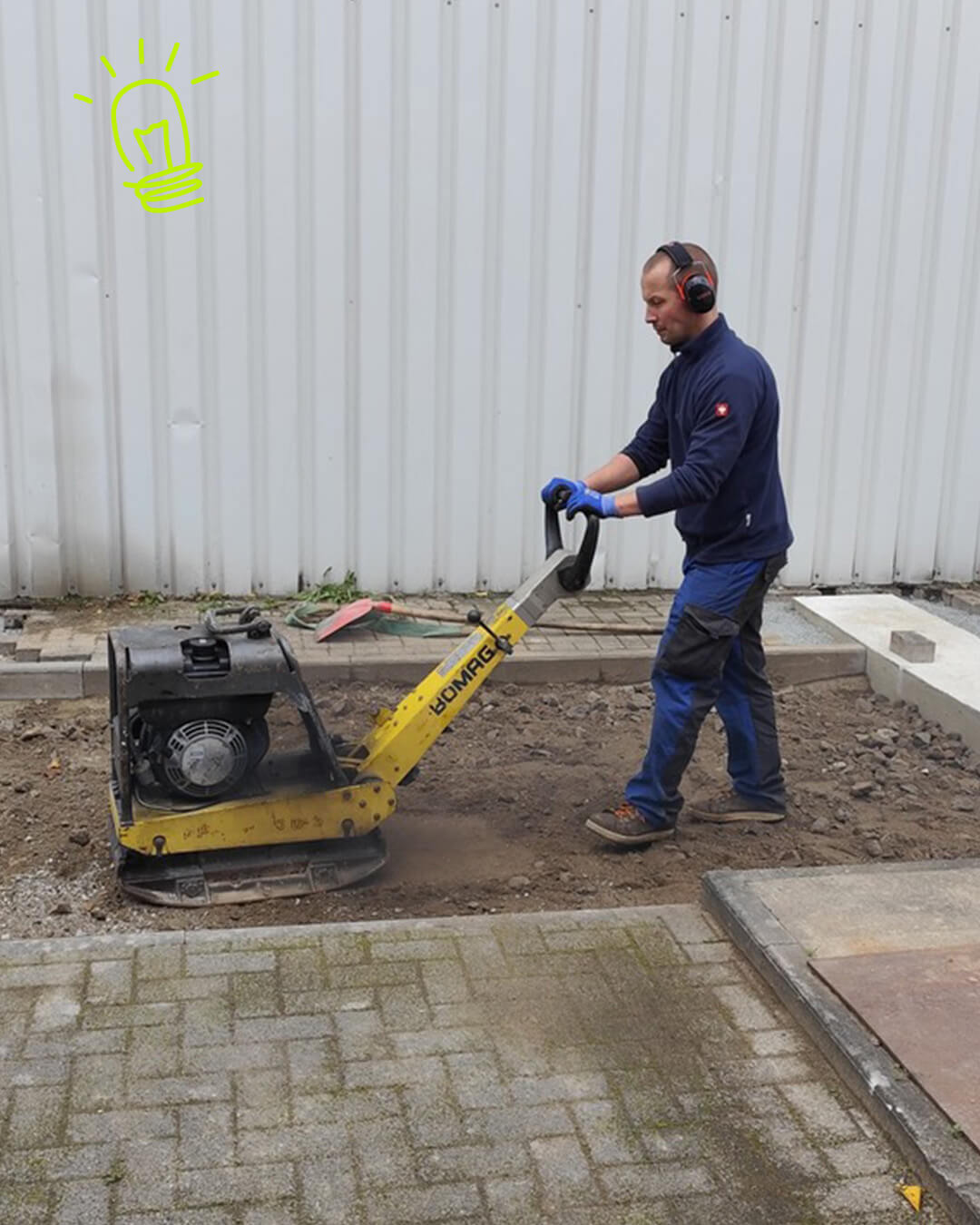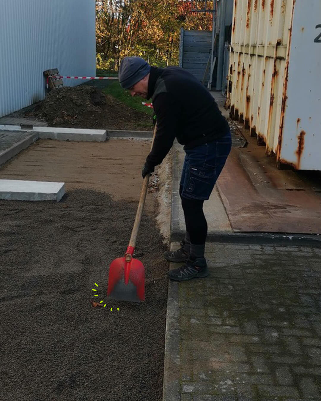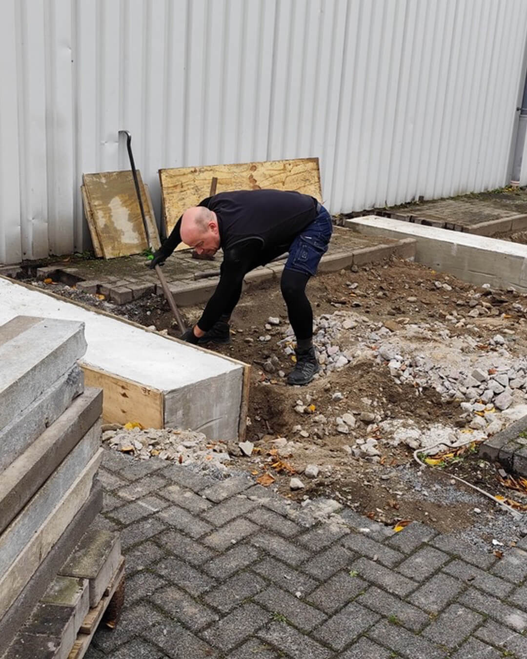 Oli, Thomas, Torsten und Michael haben am Wochenende auf der Baustelle fleißig den Boden weiter aufgefüllt, abgerüttelt und begonnen, das Pflaster neu zu verlegen. 🧱 Wir freuen uns, dass es so gut voran geht! 😊