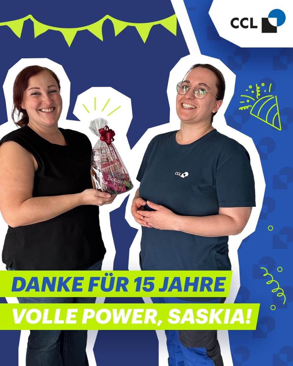 Am 01.08.2025 feierte unsere geschätzte Kollegin Saskia ihr 15-jähriges Betriebsjubiläum bei CCL. 🙌 Mit ihrer freundlichen Art und Erfahrung, ist sie eine wertvolle Mitarbeiterin an der Offsetdruckmaschine und eine echte Bereicherung für unser Unternehmen! 💙