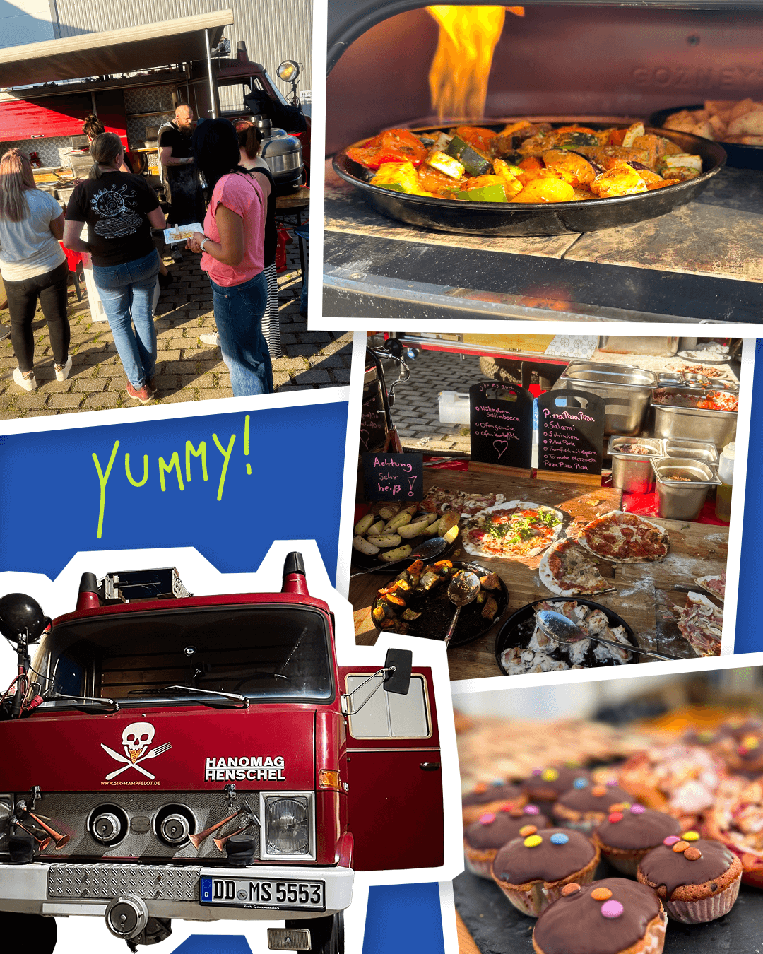 🍕 Foodtruck mit Pizza, Hähnchen, Saltimbocca, Salaten, Dessert & Eis
