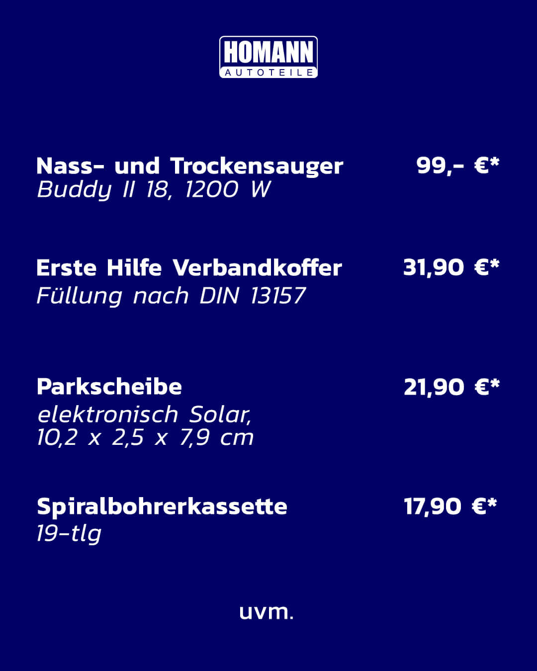 Von Erste-Hilfe-Verbandkoffern über Nass- & Trockensauger bis hin zu praktischem Werkstattzubehör – schnell sein lohnt sich, denn: