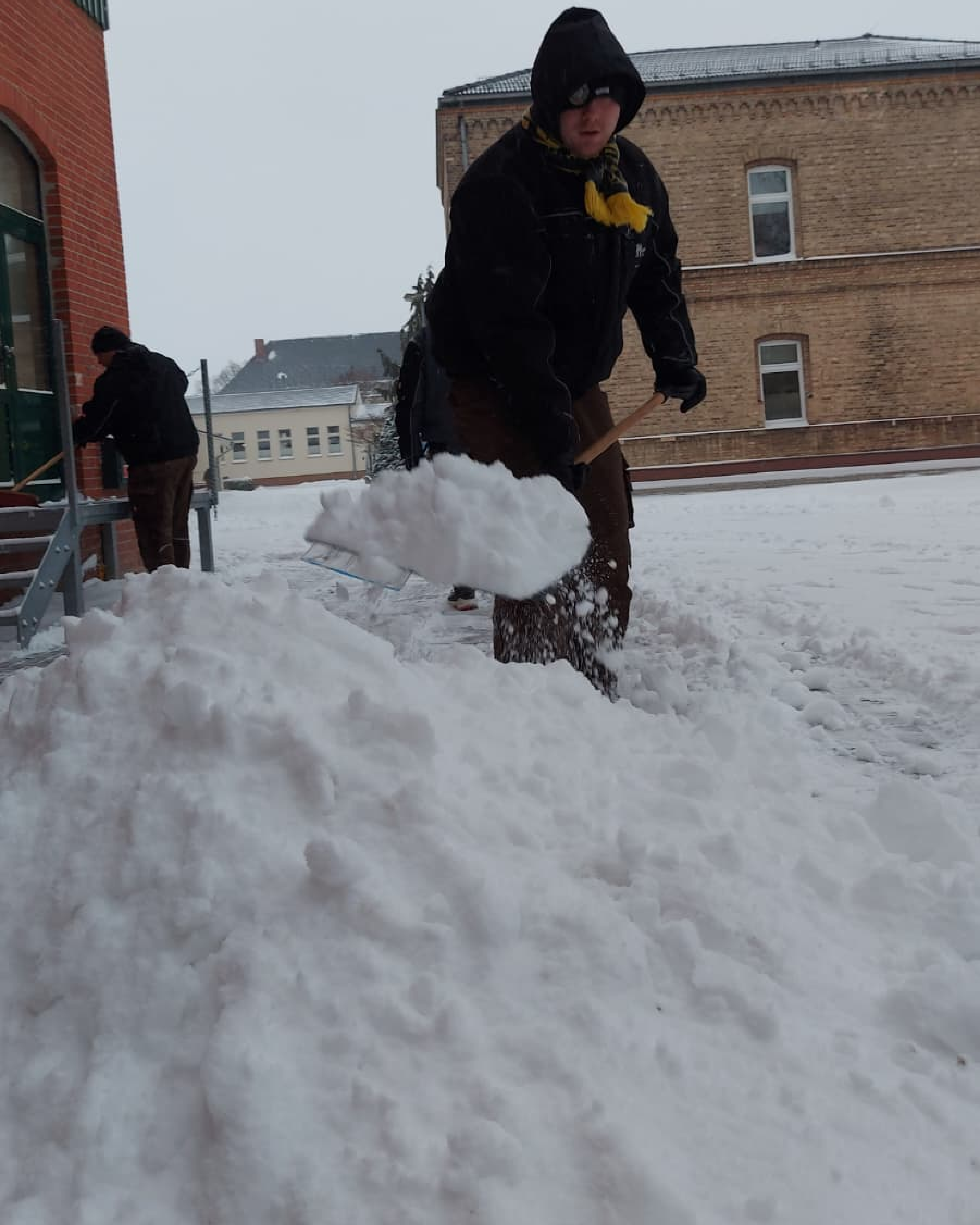 Ein Wintertag, der zeigt, was Zusammenhalt bedeutet: Dick eingemummelt haben Bewohner und Mitarbeitende gemeinsam angepackt, Wege freigeräumt und dabei viel gelacht.