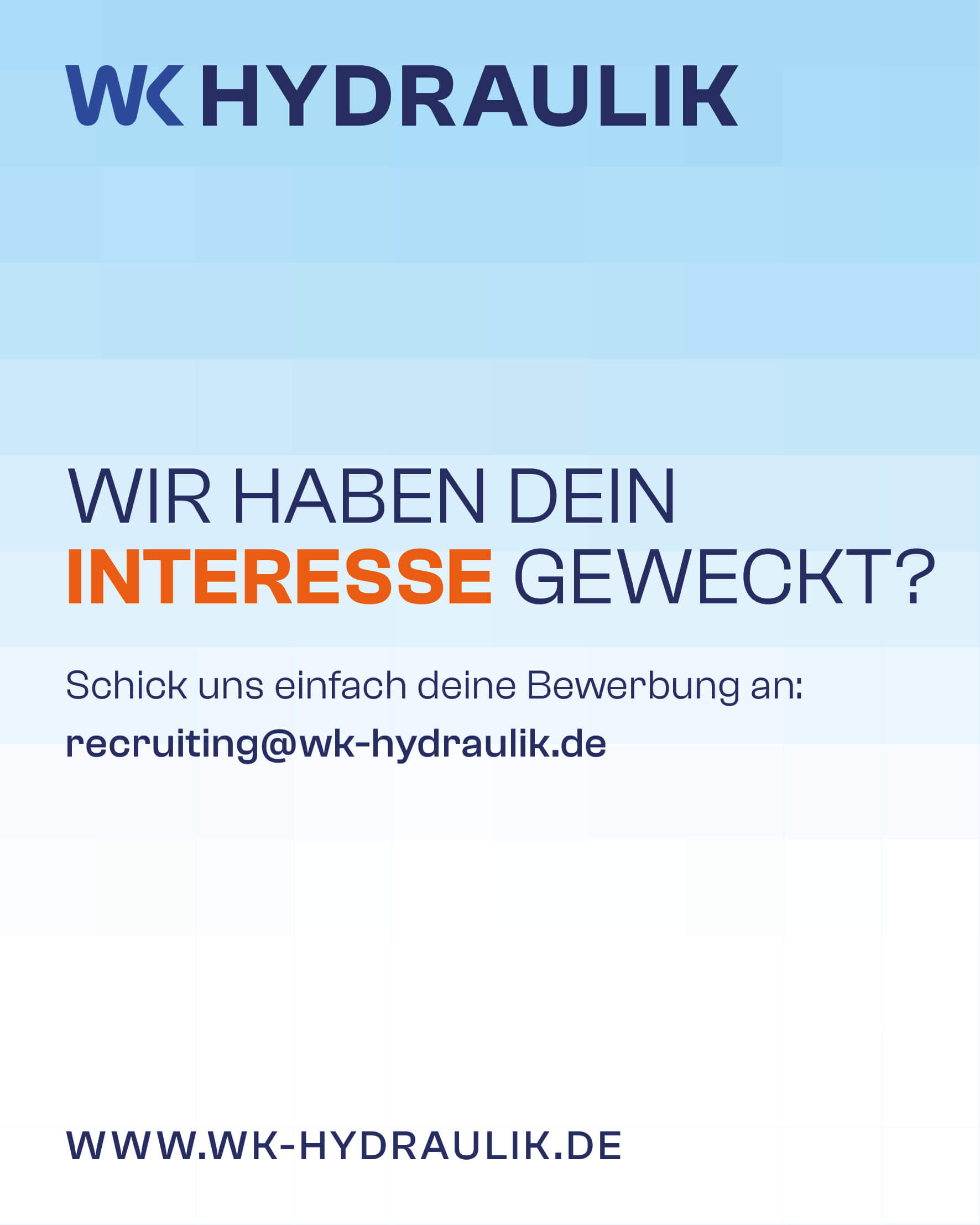 Dann schick Deine Bewerbung an: recruiting@wk-hydraulik.de
